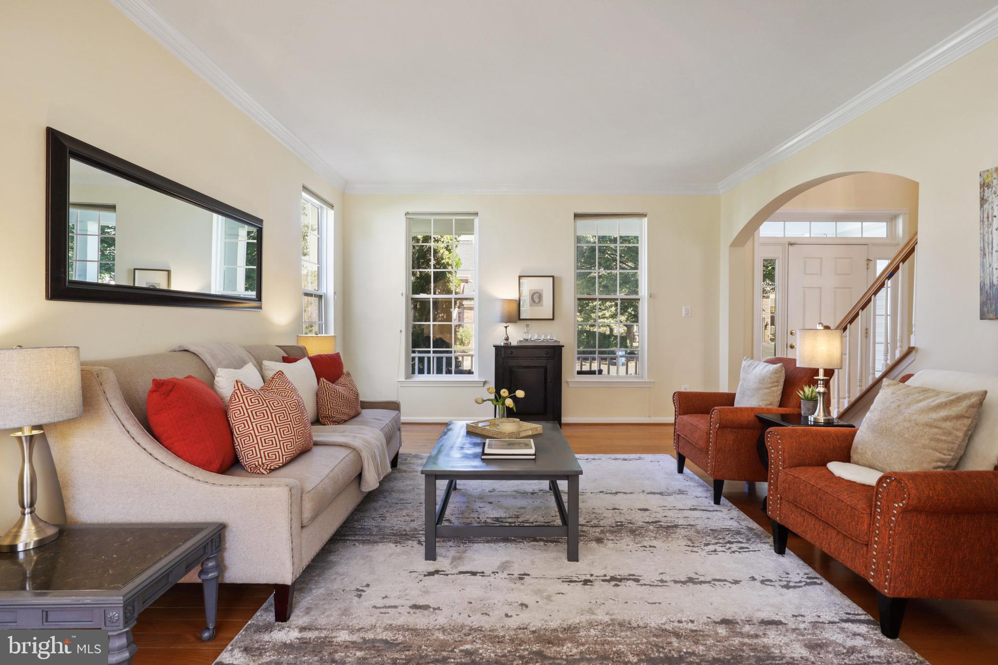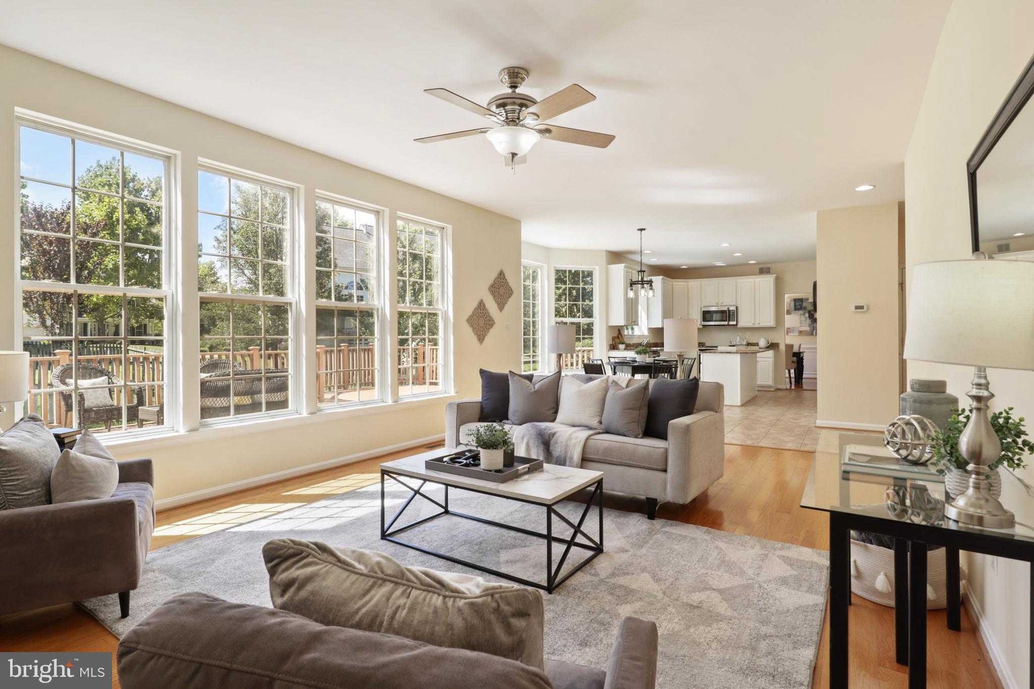 Stunning spacious 5 bedroom, 3.5 bath single family home in desirable Ashburn Village! The home features tons of natural light and is freshly painted. 4,300 square feet of open living space, with great areas for entertaining. There are hardwood floors throughout and two outdoor spaces to enjoy - a lovely front porch and a large rear deck off the family room and kitchen. Large, open gourmet kitchen with backyard views includes an island with granite counters & stainless steel appliances. A separate home office is perfect for telecommuting. The primary suite has a newly tiled shower, updated light fixtures and dual vanities. The finished lower level rec room is is a great flex space for a family room, guest suite, etc and features a separate partially finished gym. The lower level has direct access to the back yard. A spacious deck with fenced yard and a two car garage complete this fantastic home. That's not all - Ashburn Village is a wonderful community center with a variety of recreational opportunities - pool and sport courts- and it's just down the street. Lots of extras with this home - all you have to done is move in and enjoy them and beautiful Ashburn Village!